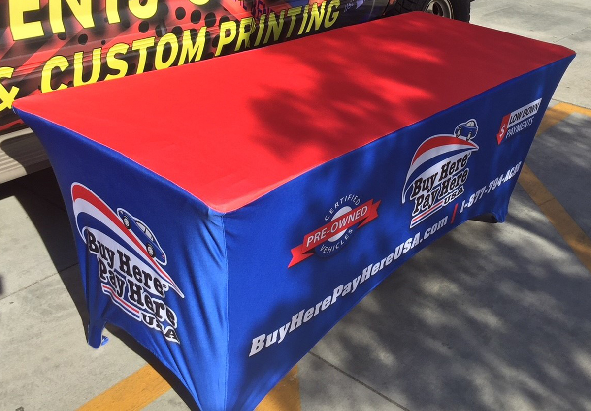 Great for store displays and easy to take to events, our table covers are made of premium polyester and are printed in full color. Lighthouse Advertising’s table covers are made of premium grade materials that are rated as fire retardant, water repellent, and UV coated.